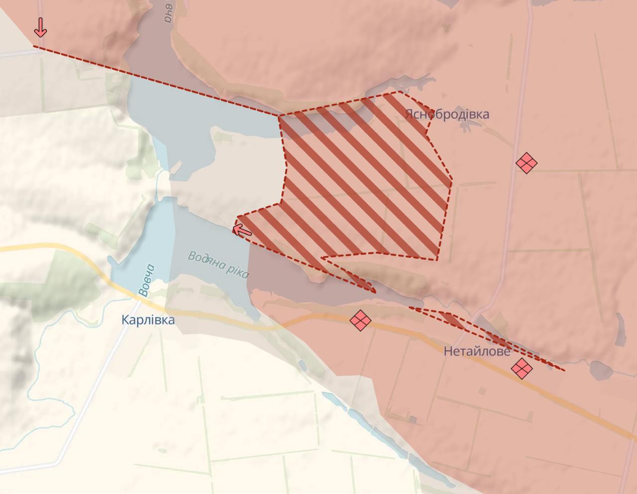 Особливо серйозний поступ зафіксовано під Карлівкою, де ЗСУ створили великий укріпрайон, спираючись на Карлівське водосховище.