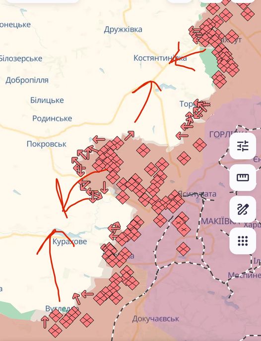 "Противник перерізав трасу Покровськ — Карлівка. Наміри його очевидні: для того і вбивається покровський виступ, щоб зрізати курахівський і торець фланговими ударами. Таким чином (якщо йому вдасться) противник хапанет центральні райони Донецької області, вони ж — південні з тих, що підконтрольні нам ще", - написав він.