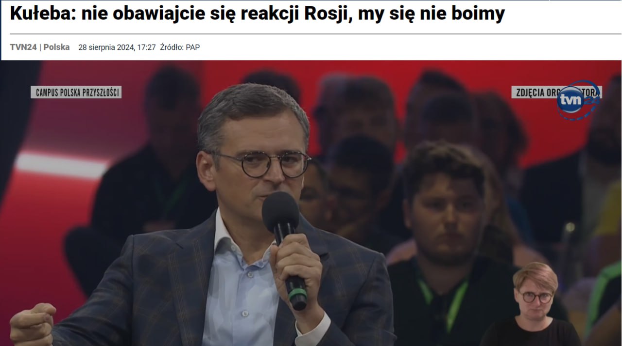 Кулеба вважає, що якби страх перед ескалацією не був головним чинником, який впливає на рішення союзників, то Україна отримала б необхідне озброєння набагато раніше і була б у кращому становищі.