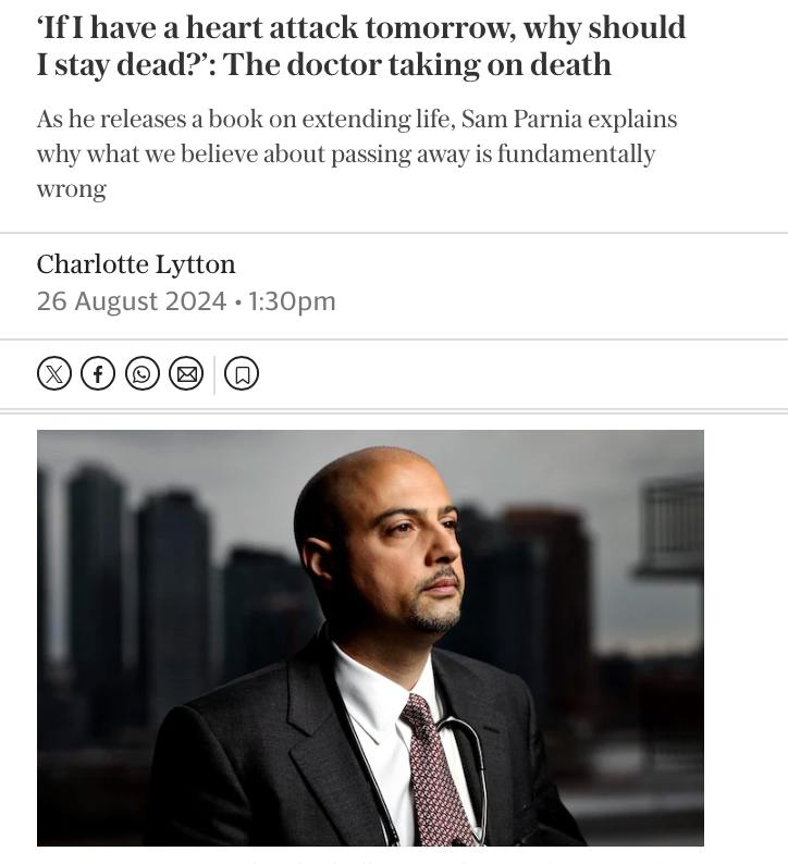 Лікар розглядає смерть не як остаточну подію, бо як “оборотний стан”. У своїй книзі "Lucid Dying" Парніа ділиться результатами 30-річних досліджень, які переосмислюють межі життя та смерті. Він упевнений, що зупинка серця або припинення мозкової активності – це не кінець, а лише процес, який можна звернути назад за правильного підходу.