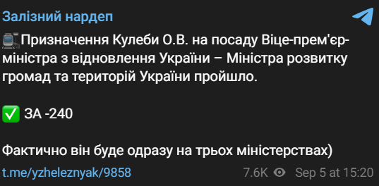 Олексія Кулебу призначили на посаду віце-прем'єра, міністра з відновлення України, міністра розвитку громад та територій України.