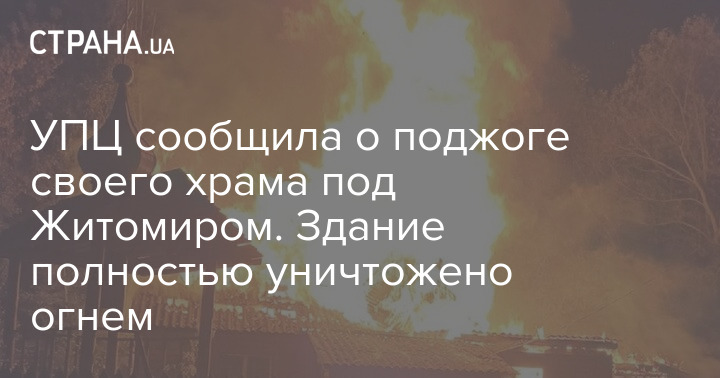 Українська православна церква заявила про підпал її храму на честь Покрови Пресвятої Богородиці у селищі Зеремля Житомирської області. Храм повністю вигорів.