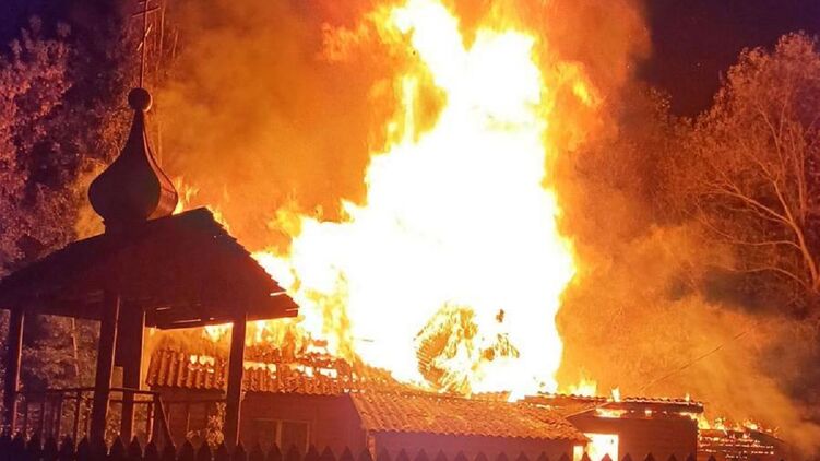 Палаючий храм УПЦ. Фото: Фейсбук УПЦ