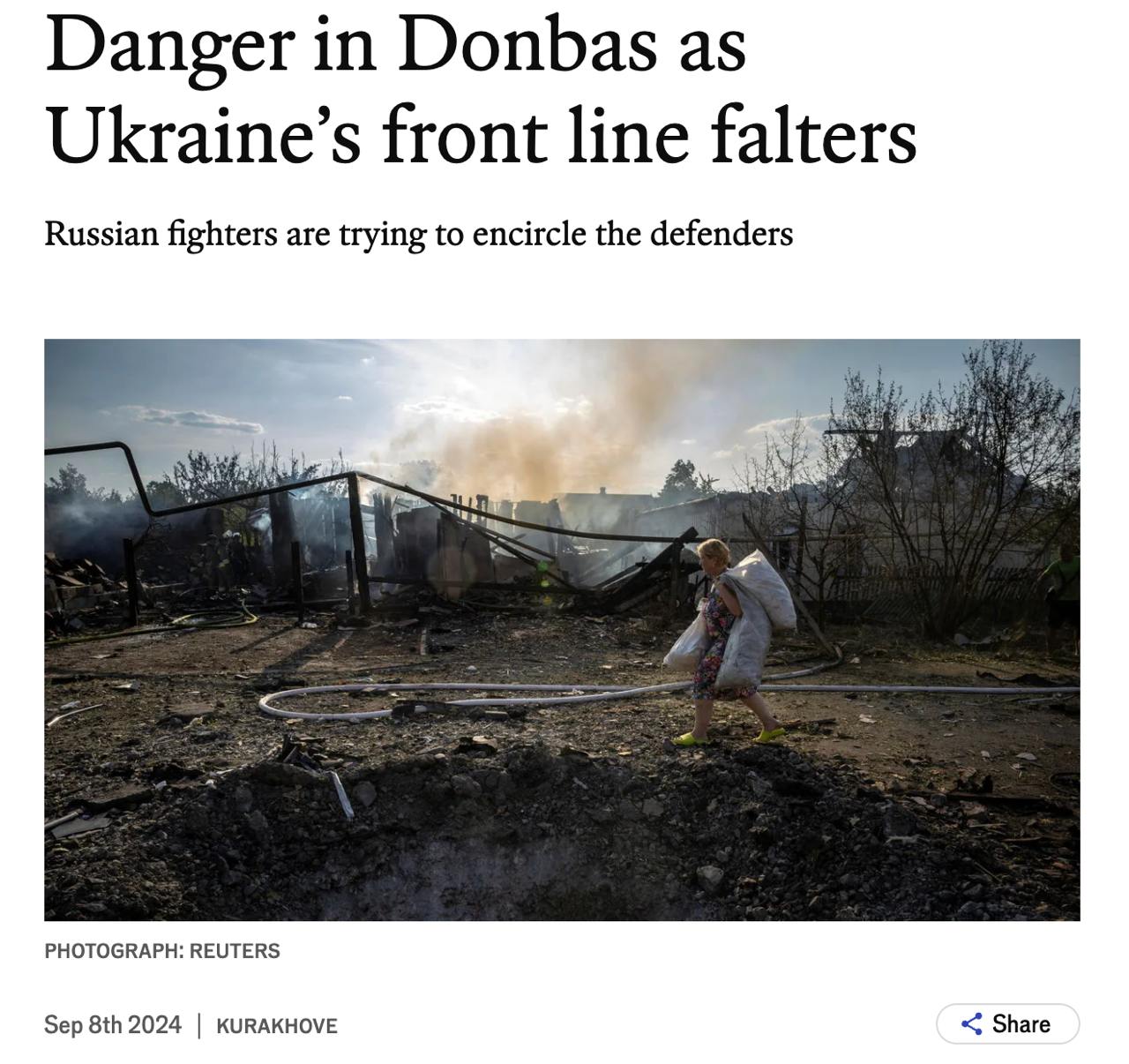 9.49 ЗСУ минулого тижня вдалося частково стабілізувати фронт під Покровськом. При цьому росіяни розвивають наступ на Курахове та загрожують там оточенням, пише The Economist із посиланням на українських військових.