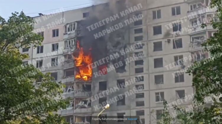 Росіяни вдарили по багатоповерхівці у Харкові. Фото: скрін