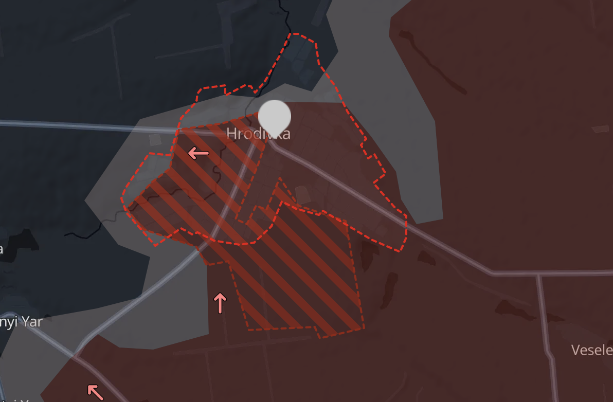 За даними паблика Deep State, найсерйозніший поступ РФ за добу було в Гродівці на Покровському напрямку. Там російські війська перейшли річку Журавка і зараз контролюють практично все селище.