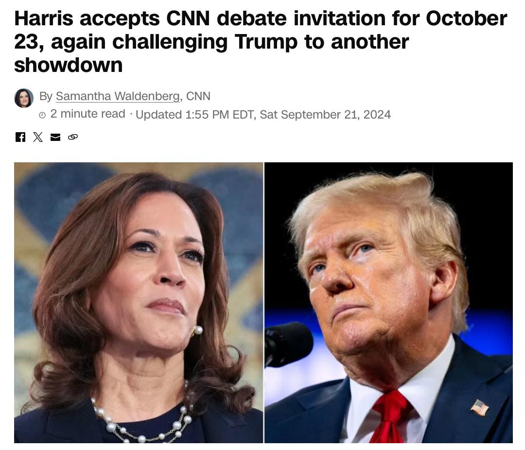 Раніше в штабі Камали Харріс повідомили, що вона візьме участь у трьох дебатах цього передвиборчого сезону : двох президентських і одних віце-президентських.