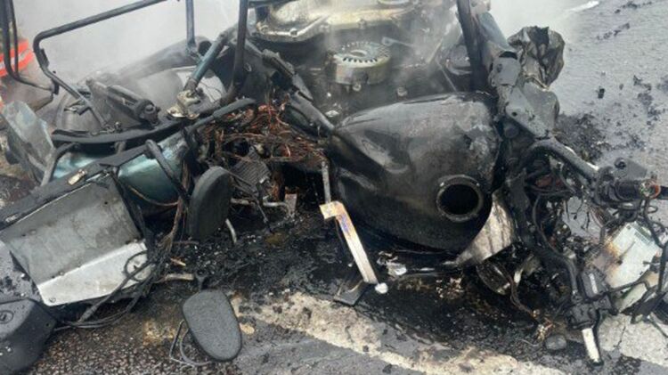 Внаслідок зіткнення мотоцикл спалахнув. Фото: Нацполіція