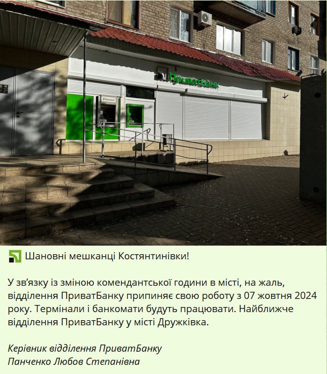 Офіційна причина закриття відділення – зміна комендантської години. Починаючи з 7 жовтня у Костянтинівці, комендантська година триватиме з 15:00 до 11:00 наступного дня.