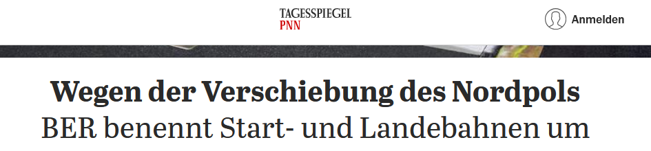 У Берліні перейменували злітно-посадкові смуги аеропорту Бранденбург внаслідок усунення Північного магнітного полюса Землі.
