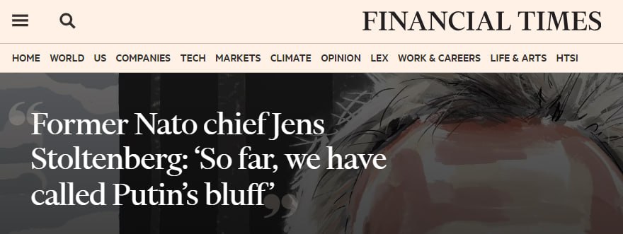 В інтерв'ю газеті Financial Times Столтенберг заявив, що у Європи надто мало зброї, потенціалу та військ у високій мірі готовності.