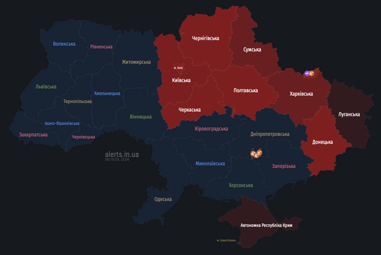 22:07 Повітряна тривога у Києві та низці регіонів.