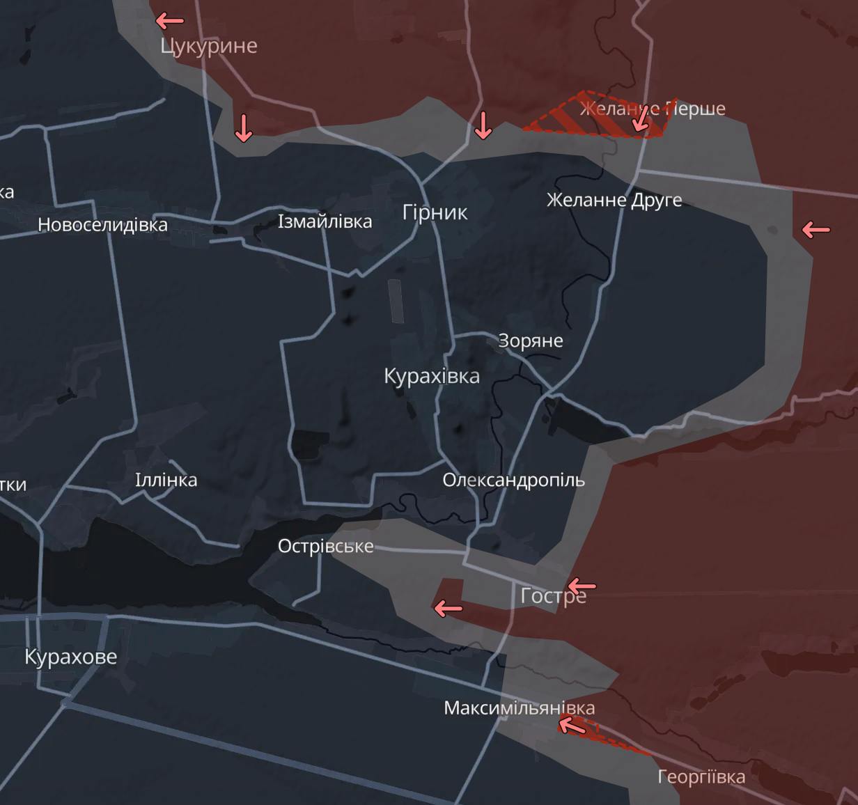 На схід від Курахового росіяни просунулися в Максиміліанівці, за яку з недавніх пір йдут бої.