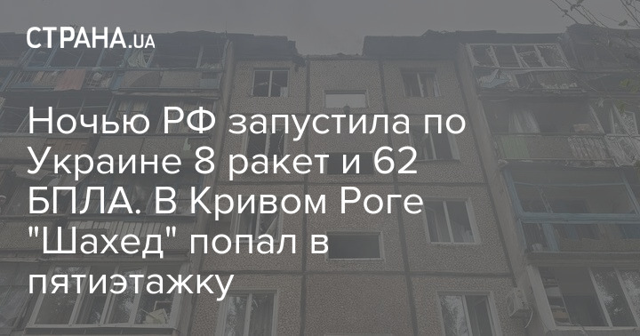 Голова Дніпропетровської ОВА Сергій Лисак повідомив, що у Кривому Розі після нічної атаки дронів пошкоджено п'ятиповерхівку та зруйновано об'єкт комунальної інфраструктури.