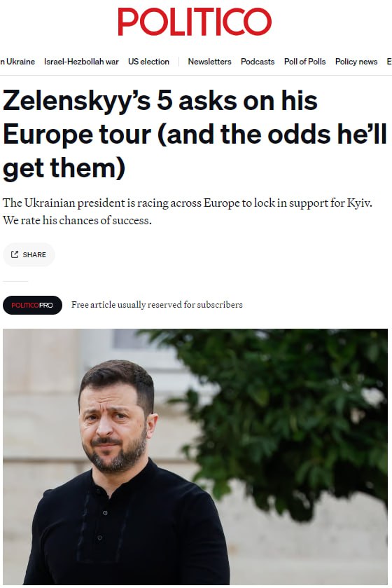 Газета Politico оцінила можливість отримання президентом України Володимиром Зеленським позитивних відповідей на ті прохання, з якими він поїхав до європейських країн.