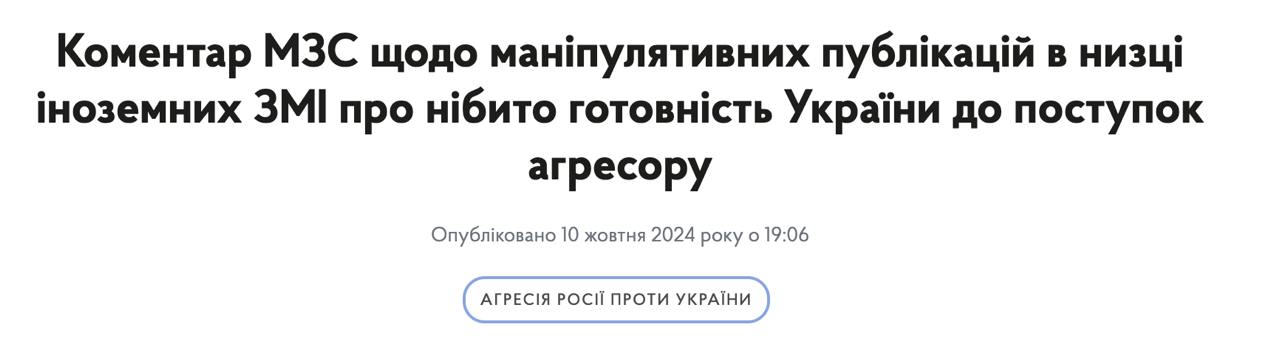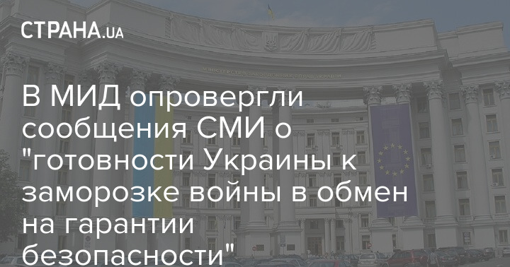 Міністерство закордонних справ України спростовує "маніпулятивні твердження, озвучені у низці іноземних ЗМІ" щодо готовності України до заморозки війни по лінії фронту в обмін на запрошення до НАТО чи гарантії безпеки.