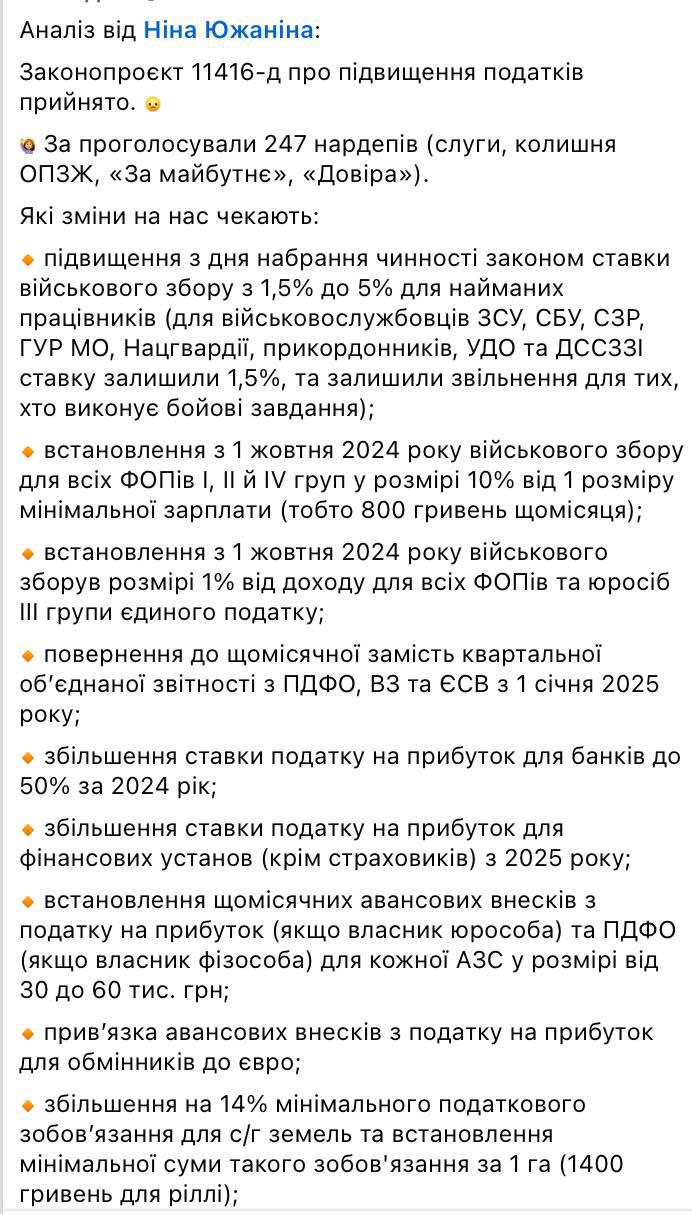 Народний депутат України Ніна Южаніна наводить основні положення ухваленого Верховною Радою законопроекту про масштабне підвищення податків:
