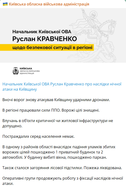 Нагадаємо, вчора вночі росіяни також атакували Київську область дронами. Загинула жінка.