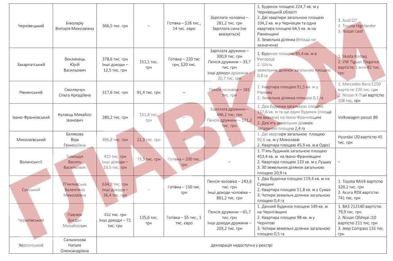 Також значні доходи показали головний лікар Вінницької обласної МСЕК Юлія Даниленко та керівник Львівської МСЕК Володимир Решота.