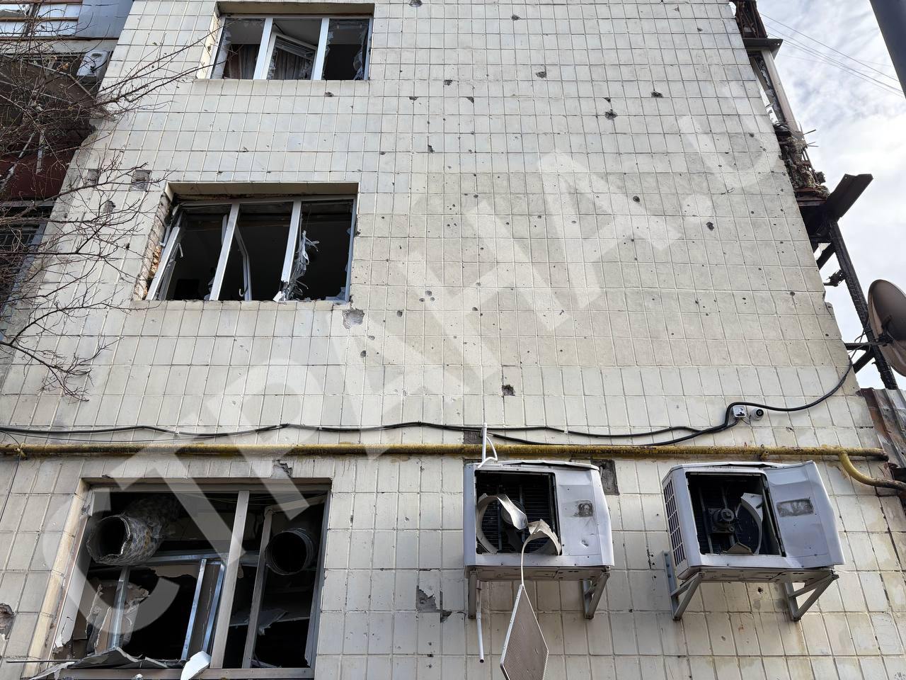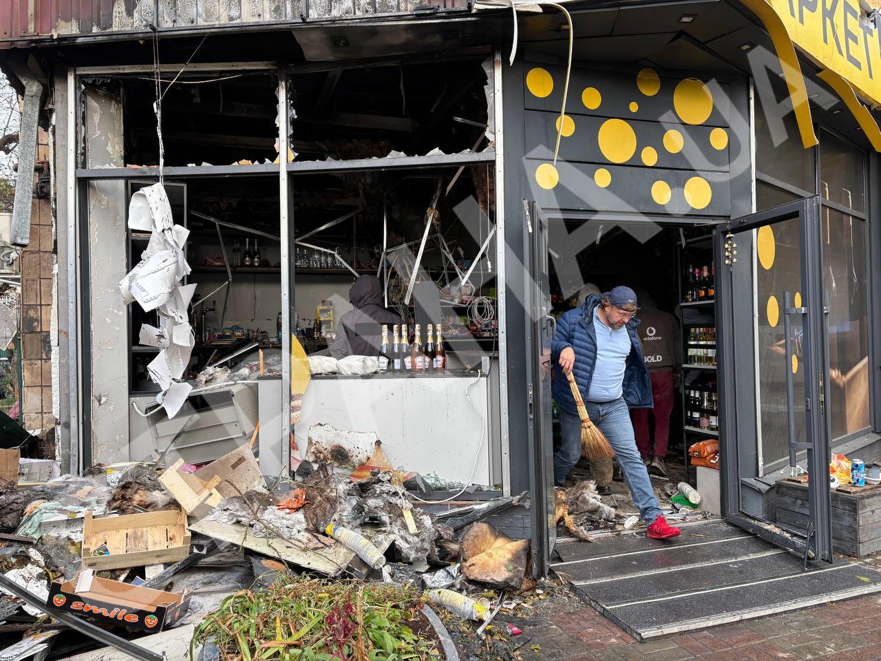 Наразі на місці працюють правоохоронці та співробітники комунальних служб, які розчищають вулицю від уламків розбитих вікон.
