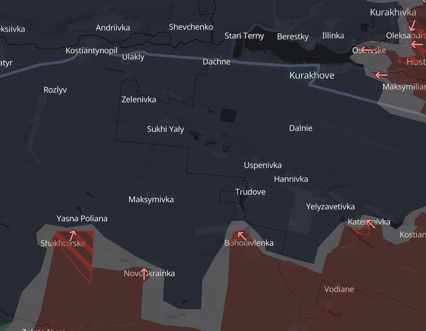 При цьому російські паблики заявляють, що їхні війська планують з боку Богоявленки повернути на захід, щоб відрізати український гарнізон у Новоукраїнці та посилити тиск з боку Ясної Поляни у напрямку Константинополя.