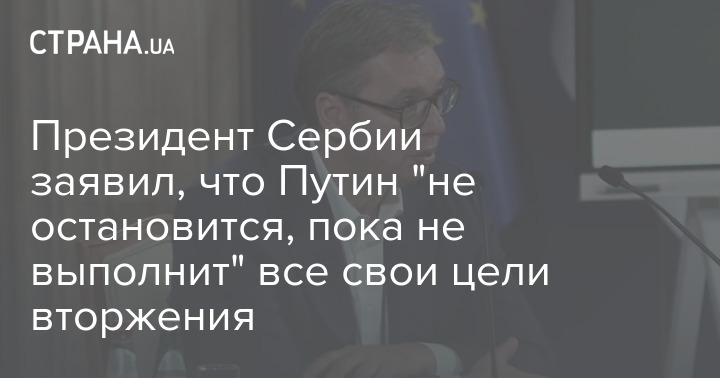 Вучич переповів відповідь Путіна, зазначивши, що "всі цілі "спеціальної військової операції", як він заявив, будуть виконані".