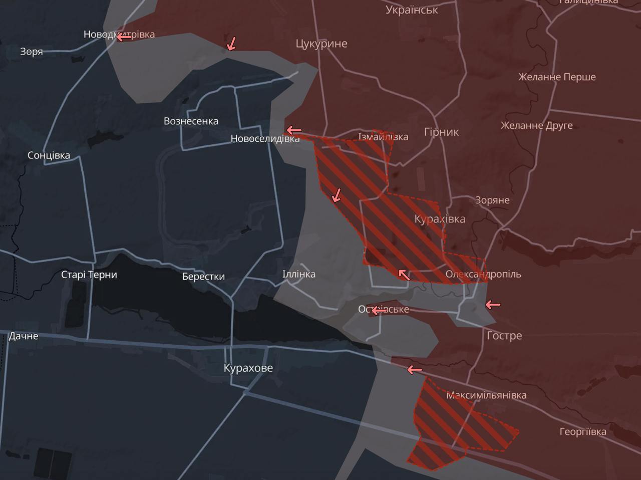 На північ від Курахового DS підтверджує просування РФ у бік Вознесенки. Українські військові пишуть, що "майже втрачено" село Іллінка.