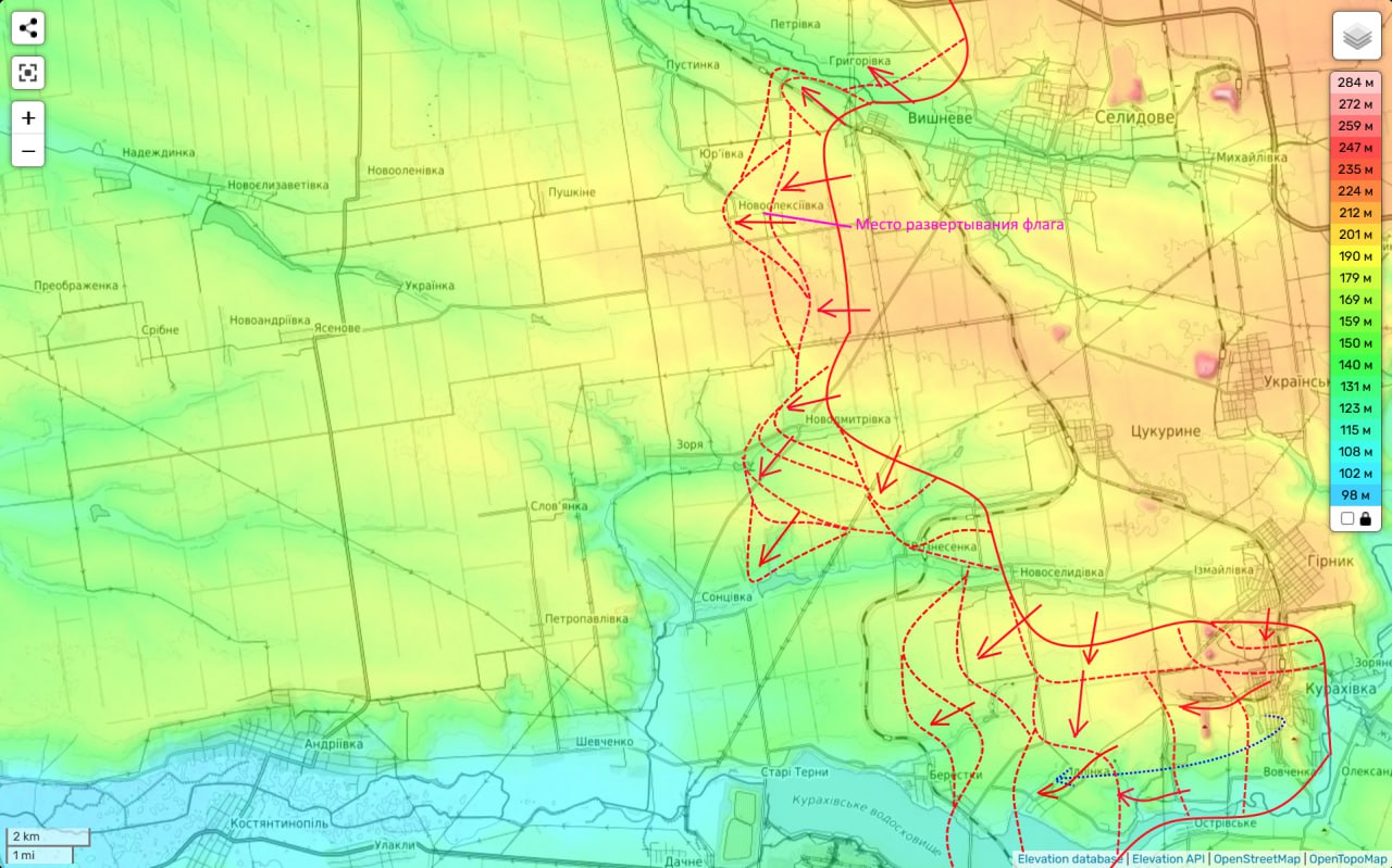 Тут важливо розуміти, що на цій ділянці йдеться вже не про курахівський напрям, а про настання від Селидового у бік Дніпропетровської області на південь від Покровська. Не виключено при цьому, що намагатимуться обійти Покровськ із західного боку. Або ж продовжувати рух у бік Дніпропетровської області, про ймовірність чого "Країна" вже розповідала.