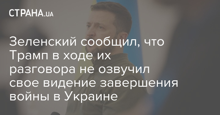 Зеленський повідомив, що Трамп у ході їхньої розмови не озвучив своє бачення завершення війни в Україні.