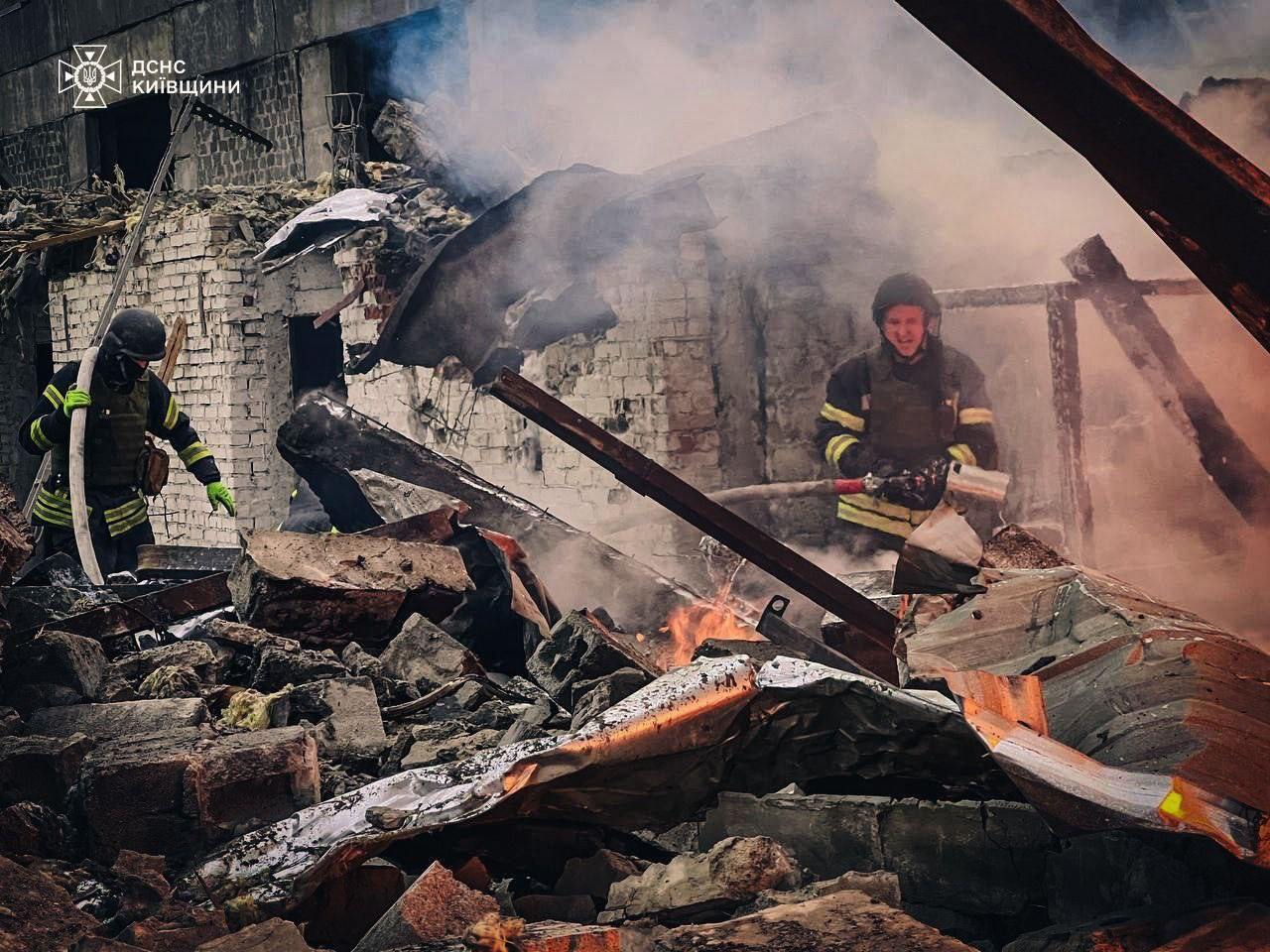 Судячи з фото, які публікує ДСНС, одна з будівель сильно зруйнована.