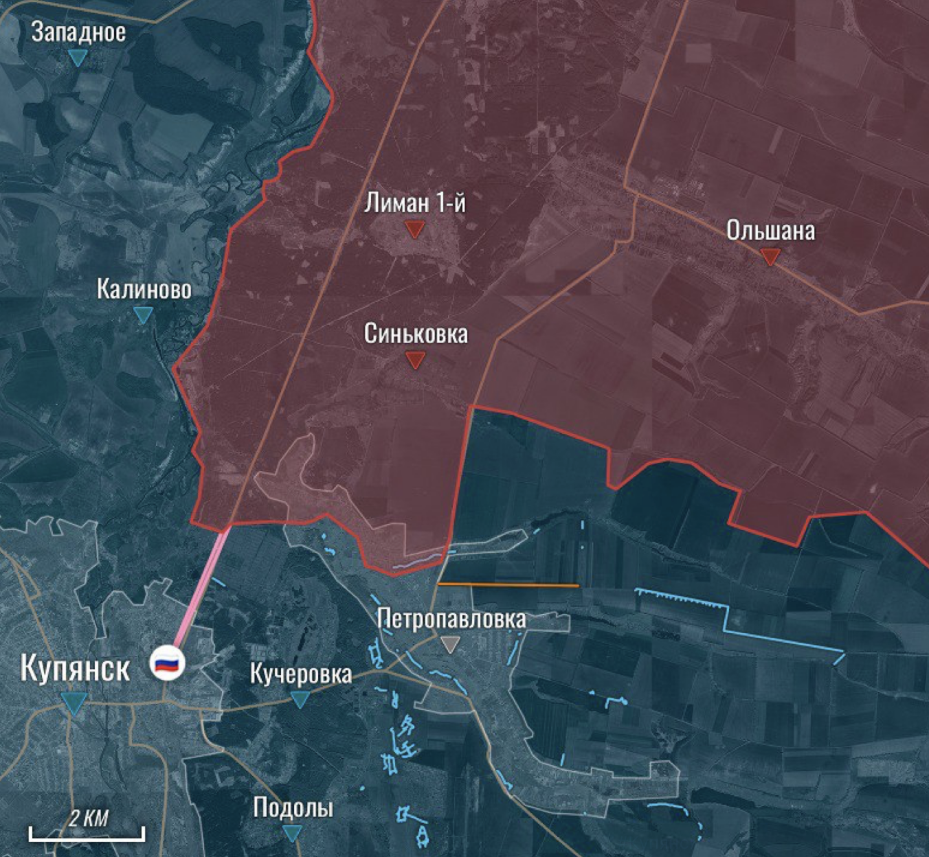 За інформацією Deep State, в середу після обіду дві колони російської техніки вирушили з району Лимана Першого до Куп'янська і зуміли увійти до міста та висадити десант, який розосередився по домівках біля району Сватівської вулиці ("у парадному режимі залетіли до Куп'янська" - характеризує ситуацію Deep State).