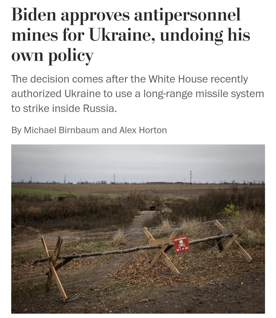 8.00 Байден передає Києву заборонені конвенціями протипіхотні міни.