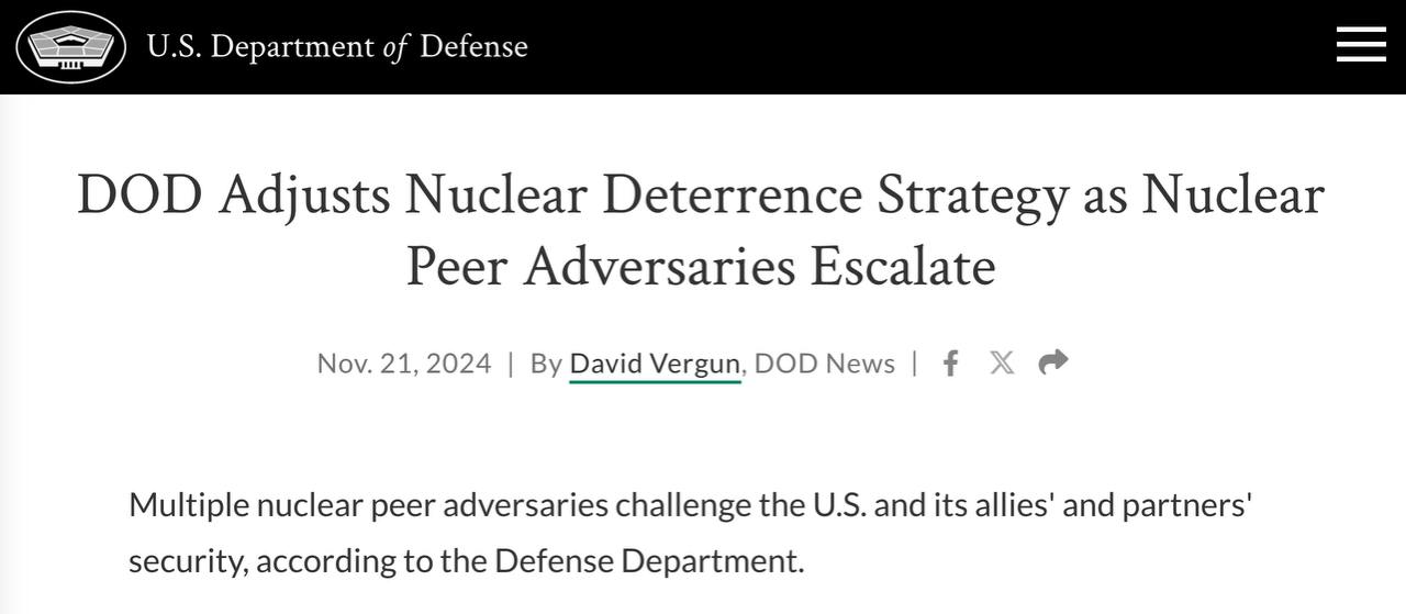 Тому, за його словами, Штатам може знадобитися коригування Огляду ядерної політики 2022 року "для підтримки здатності до ядерного стримування у світлі зростання ядерного потенціалу Китаю та Росії" і можливої відсутності угод про контроль над ядерними озброєннями після лютого.