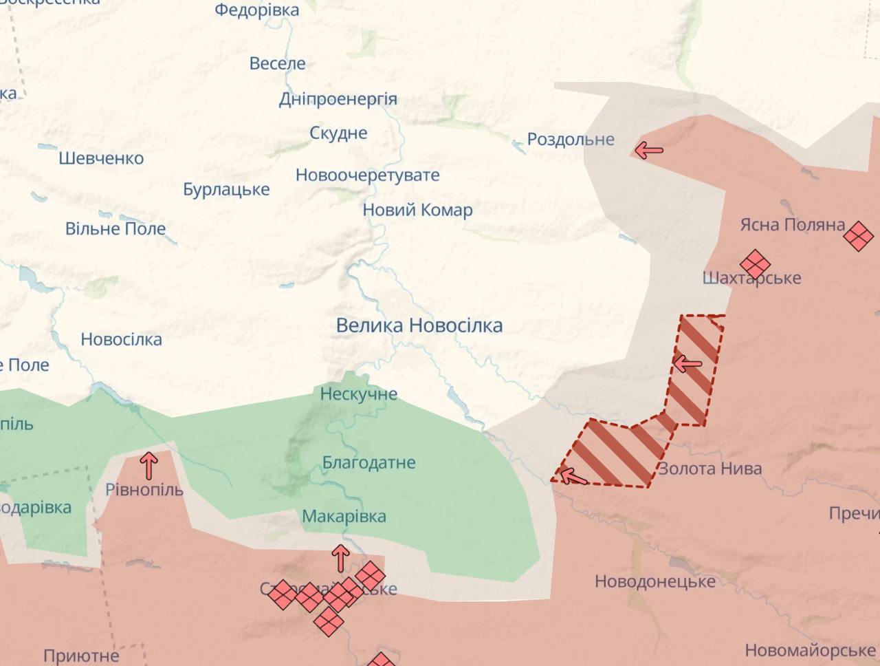 Наразі штурми йдуть переважно в районі Великої Новосілки, яка є "надзвичайно важливим вузлом оборони півдня України". Там російські війська вже мають просування, пов'язані для РФ із захопленням району Курахове.