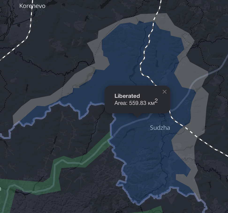 Загалом у Курській області ЗСУ утримують близько 800 км кв. території, повідомляють українські ЗМІ з посиланням на джерело у Генштабі. Заявлено, що максимально ЗСУ утримували понад 1300 км кв.
