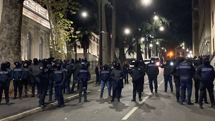 Незабаром після початку мітингу біля парламенту Грузії сталося зіткнення протестувальників з поліцією.