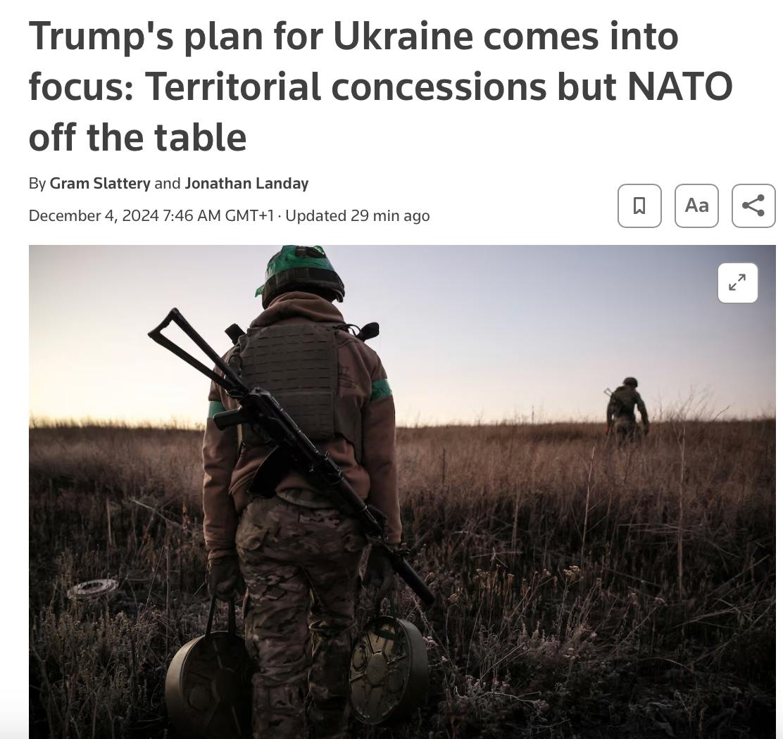 Будь-які потенційні плани обраного президента США Дональда Трампа щодо України зводяться до формули "Територіальні поступки без членства в НАТО".