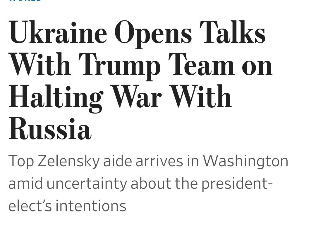 За даними WSJ, Україна незабаром "планує заявити про свою готовність до миру". Мета Єрмака в США пише газета з посиланням на джерела - представити Україну як "конструктивного партнера у справі досягнення миру, а не перешкоду для нього". А також налагодити стосунки із помічниками обраного президента.