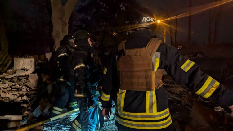 Рятувальники на місці прильоту. Фото: ДСНС