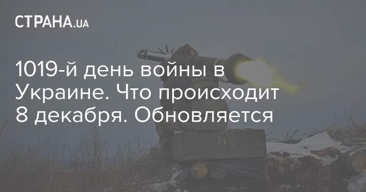 У суботу, 8 грудня, в Україні триває 1019-й день війни з Росією.
