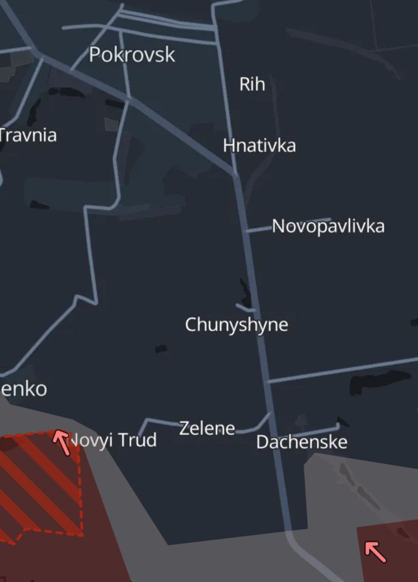 Бої точаться вже приблизно у половинi великого селища Шевченка за три кілометри від околиць Покровська (російські паблики заявляють про захоплення половини Шевченка).