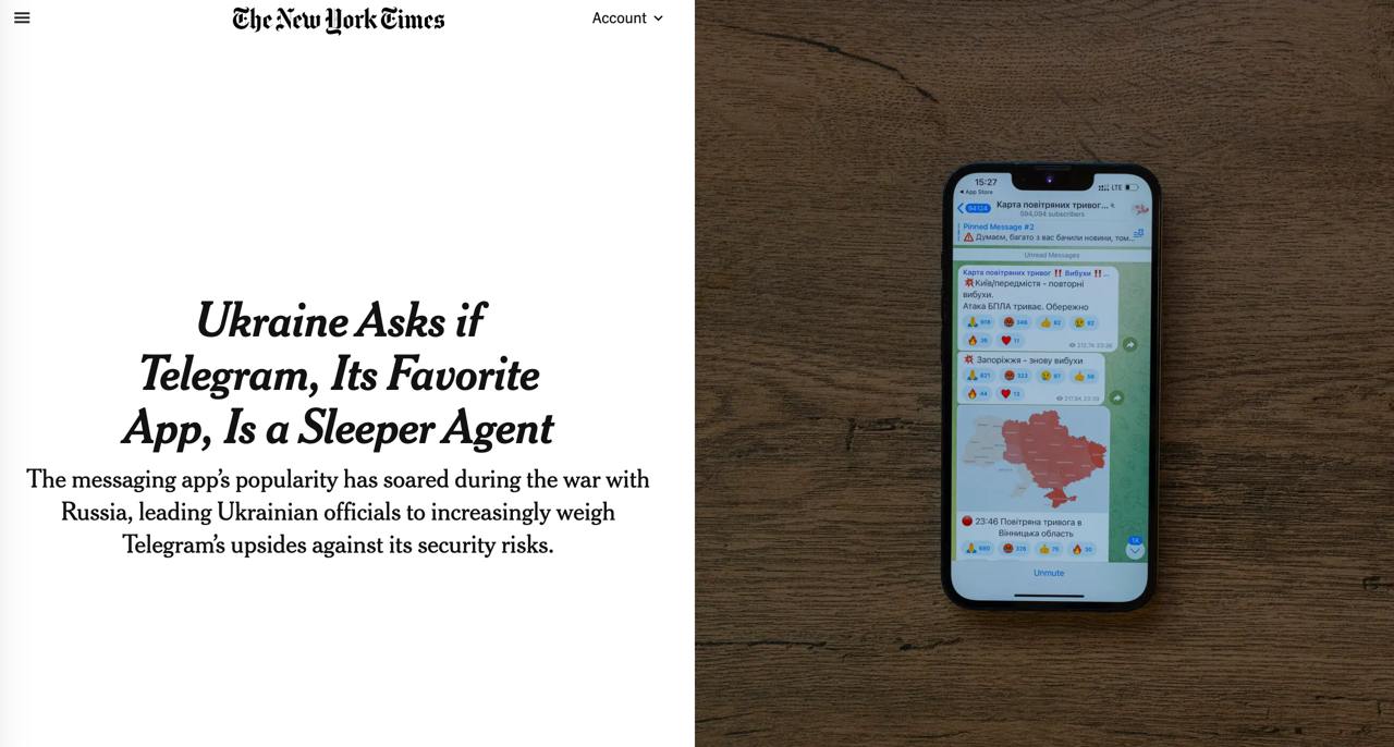 У 2022 році напередодні вторгнення розвідка попередила Зеленського про ризики російського впливу через Телеграм, але заявила, що ця загроза не заслуговує на пряму заборону програми.