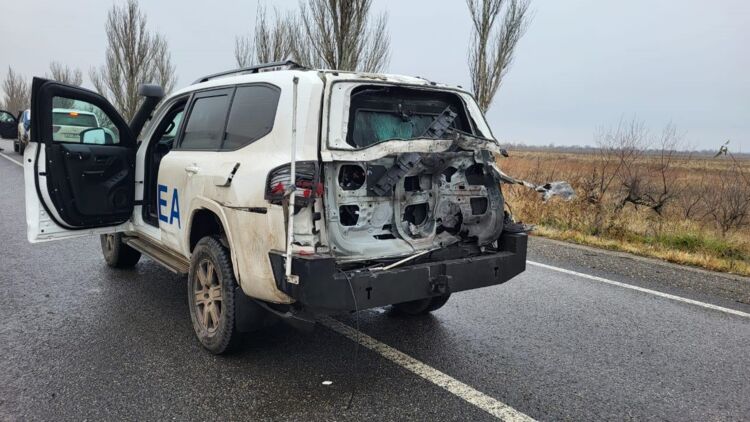 У службовий автомобіль Міжнародного агентства з атомної енергії (МАГАТЕ), який прямував на Запорізьку АЕС, що під контролем РФ, потрапив безпілотник
