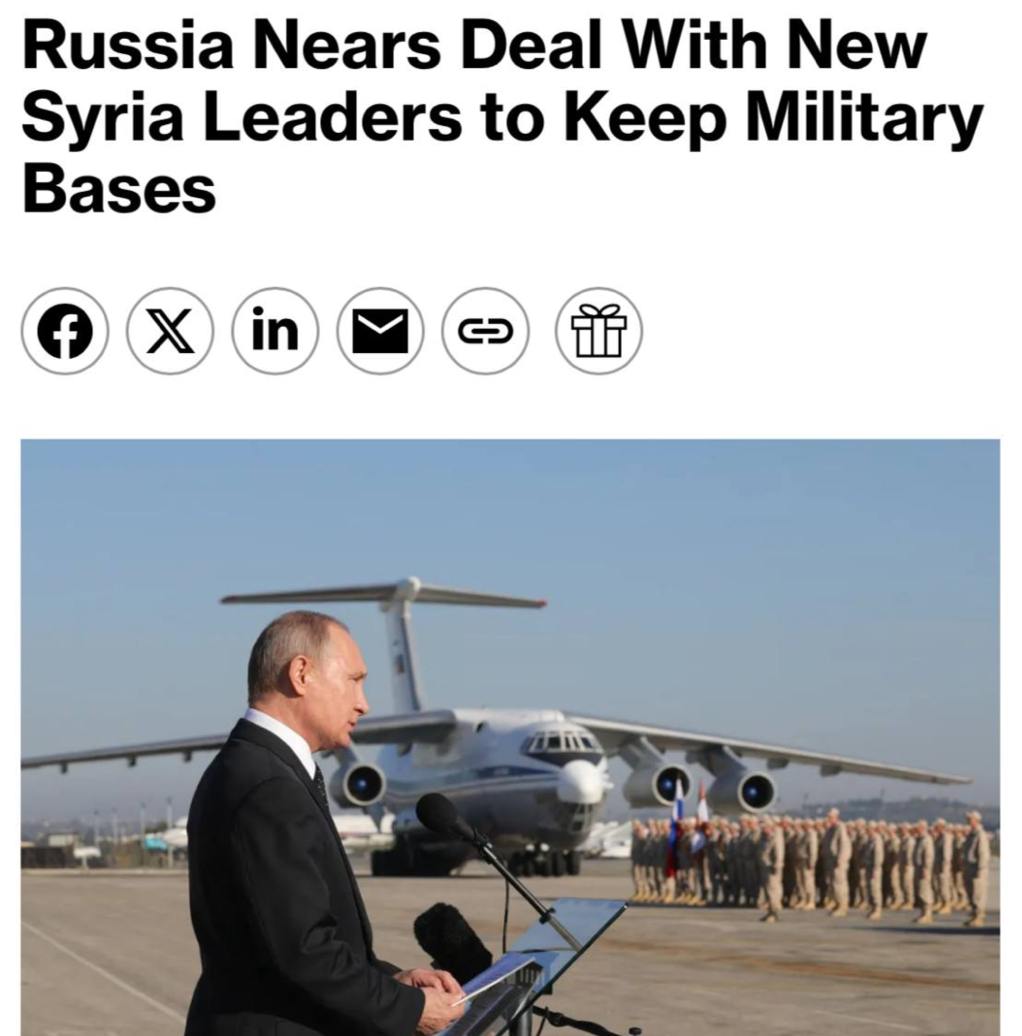 Росія наближається до угоди з новим керівництвом Сирії про збереження двох важливих військових баз у цій близькосхідній державі, що є ключовою метою Кремля після падіння президента Башара Асада.