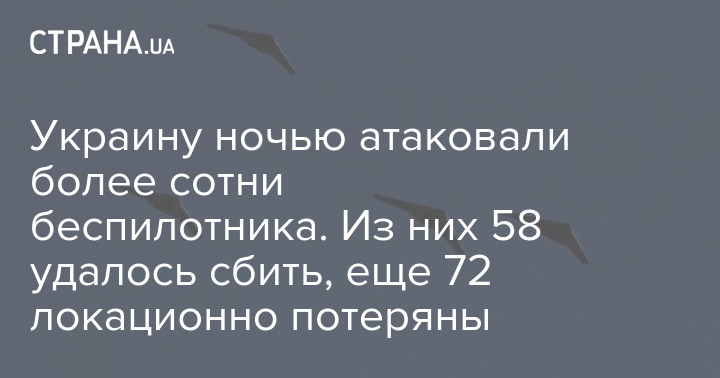 Сьогодні вночі росіяни атакували Україну 132 ударними БпЛА типу "Shahed" та безпілотниками інших типів. Збито 58 БПЛА, ще 72 було локаційно втрачено.