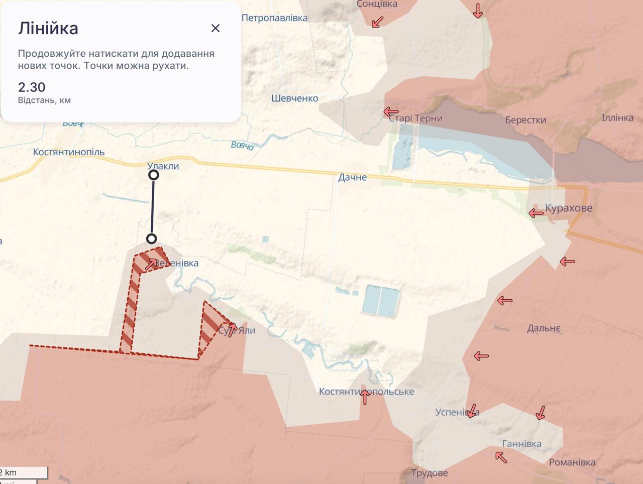 Але головні події зараз розгортаються на південь від Курахового. Там росіяни прорвалися до Зеленівки, за деякими даними, вже закріпившись там, і небезпечно наблизилися до траси, яка веде в Курахово з боку Запоріжжя. Від Зеленівки до траси лишилося менше двох з половиною кілометрів. До цього відстань була понад п'ять кілометрів.