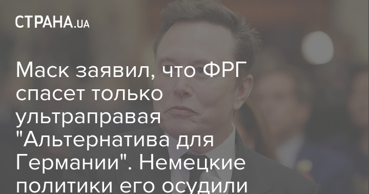 Американський мільярдер Ілон Маск заявив, що лише ультраправа партія "Альтернатива для Німеччини" може врятувати європейську країну.