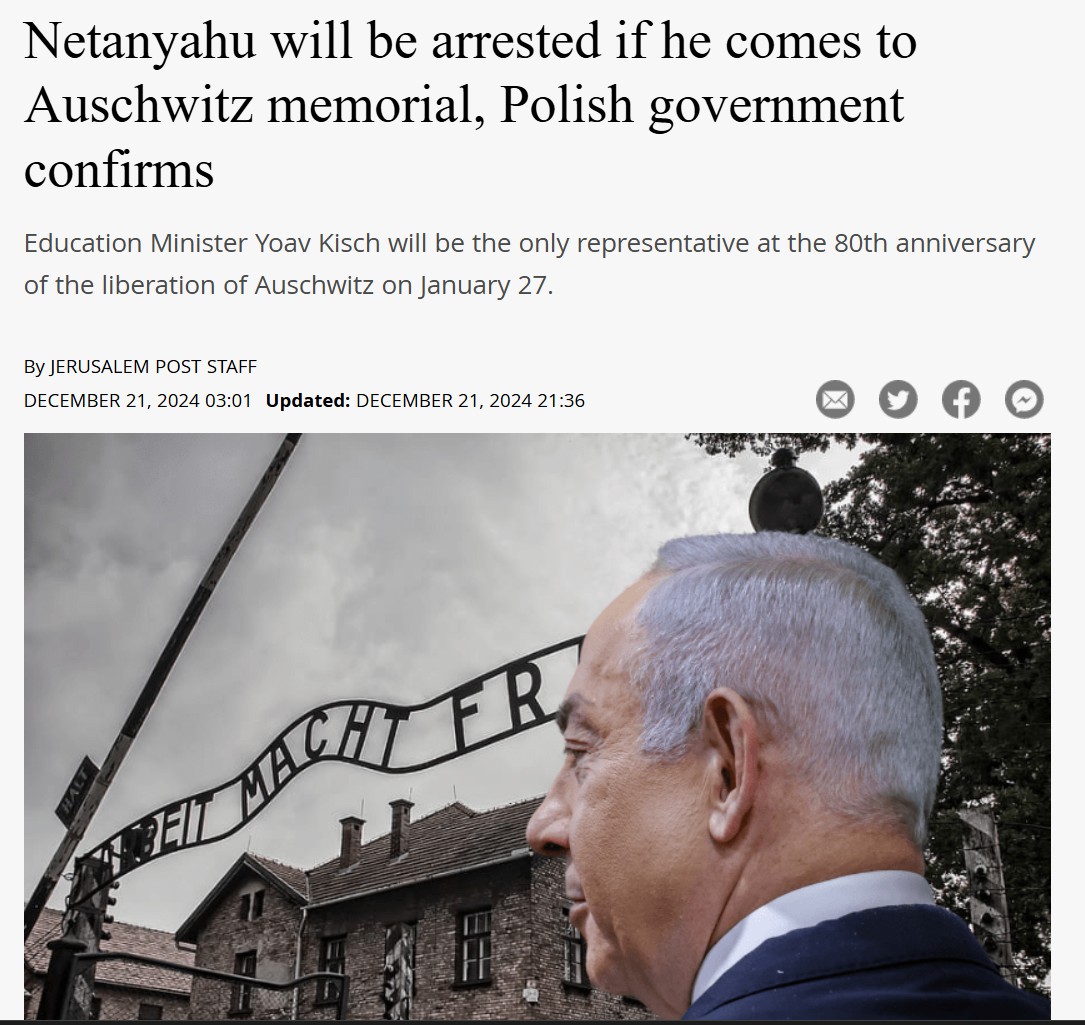 Польські джерела повідомили Rzeczpospolita, що Варшава заявляє про готовність виконати ордер МКС щодо Нетаньяху у зв'язку з тим, що сподівається на арешт Володимира Путіна, щодо якого МКС також виписав ордер на арешт ще у 2023 році.