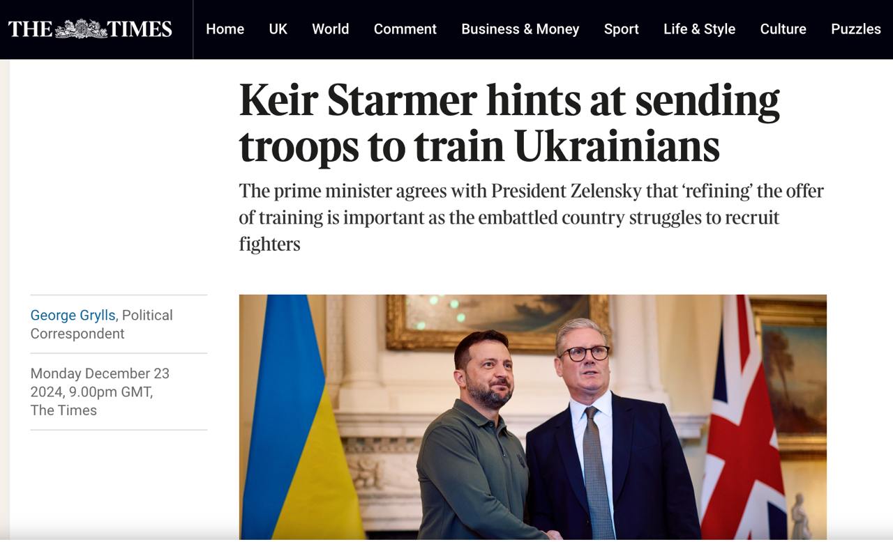 "Сер Кір Стармер натякнув, що британські війська можуть бути розгорнуті на заході України з підготовки солдатів", - пише видання.