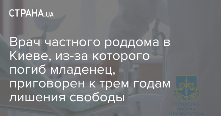 Лікар акушер-гінеколог приватного пологового будинку в Києві, через який у травні 2020 року загинуло немовля, засуджений до трьох років позбавлення волі.